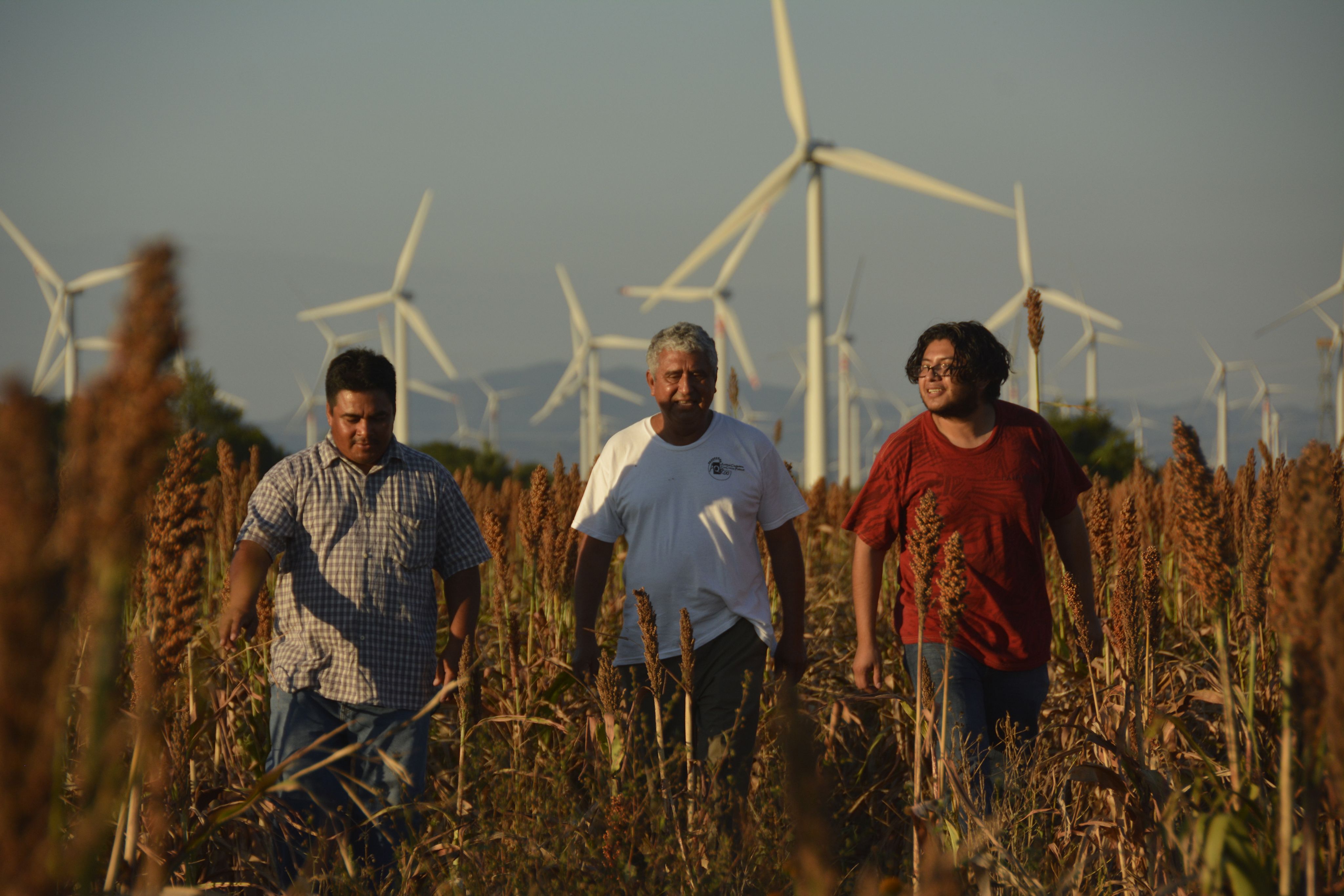 Photo 1: Unión Hidalgo community members on farmland surrounded by 20 wind parks in the region. Photo: ProDESC